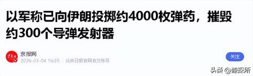 以色列空军已经向伊朗投掷了大约4000枚弹药,累计摧毁了伊朗境内300个左右的导弹发射设备,和美军的行动形成了呼应。