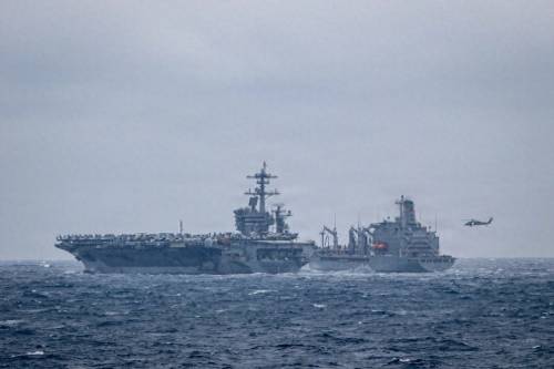航母编队海上补给时,航速也就10~14节,并且编队补给时至少会有一艘航母和一艘驱逐舰短暂退出作战值班(总不能指望啥都让供应上吧?)由于编队庞大,且航速偏低,航母编队被定位的概率会急剧增加,客观增大被打击的可能。伊朗很可能趁着美国航母编队补给的时候,向美国航母编队疑似所属海域刷几发大导弹。