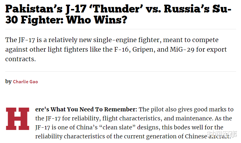 近日,据美国《国家利益》网站报道称,巴基斯坦长期使用JF-17"枭龙"在印巴边境执行战备巡逻任务。在7月份的一次采访过程中了解到,"枭龙"战机曾在100公里外使用战机雷达牢牢地锁定住了印度空军的苏30MKI战机。文章还称,巴基斯坦飞行员对"枭龙"战斗机的稳定性与飞行性能给予了良好的评价。