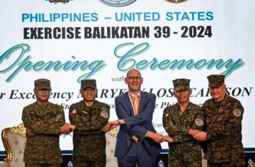 南海又开始不太平了,大鱼们全都跑来了。从4月21日到5月9日,美、菲、澳、加、法、日、韩、英这八个国家联合搞了一场“肩并肩”军演。