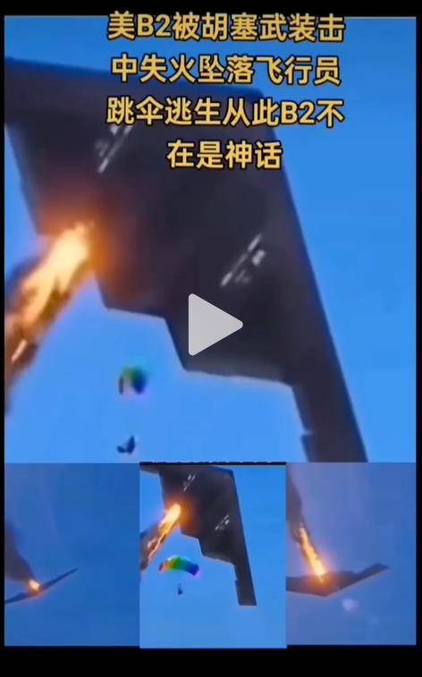 还有部分自媒体声称,B-2轰炸机被胡塞武装击落,并配上了所谓美军飞行员从B-2跳伞的“现场照片”。消息一出,很多网友纷纷信以为真,一方面指责美国的“灭绝人性”,另一方面又盛赞胡塞武装“光脚不怕穿鞋”的英勇气魄。