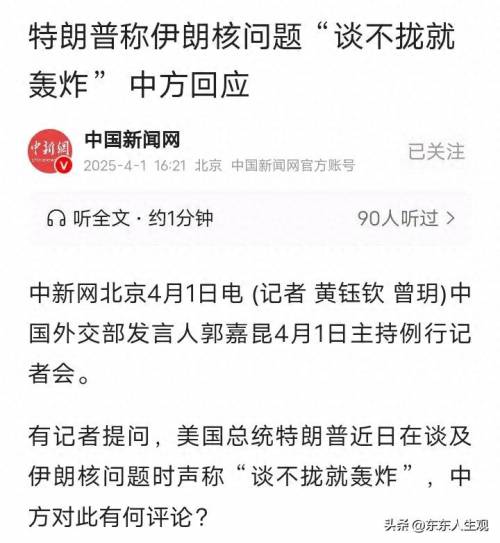 特朗普称伊朗核问题“谈不拢就轰炸”,说明他的军事冒险计划并非空穴来风。此前,美军已经深陷红海胡塞武装的战争泥潭,强大的美军却似乎拿穿拖鞋的胡塞武装并没有更好的办法,除非美军进入地面进攻。也有可能会拿伊朗开刀,转移人们对美军实力的质疑。