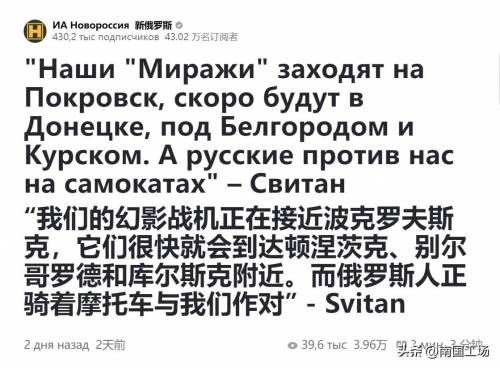 现在乌克兰只能剩下嘴硬了,一位乌克兰专家将法国刚援助的幻影-2000战斗机称为“神器”,吹嘘以后俄罗斯军队将只能“在滑板车上对付我们”。其实,乌克兰现在只会一味地向西方求援,指责俄罗斯,妄想获得新的军事援助,可惜达不到目的。美国已经不想帮忙了,欧洲也只是“动口不动手”,有关军援计划已推迟多久,2025年4月3日,在华沙举行的欧盟国防部长会议讨论向乌克兰提供200万枚炮弹的问题,实则难以通过相关的决定。