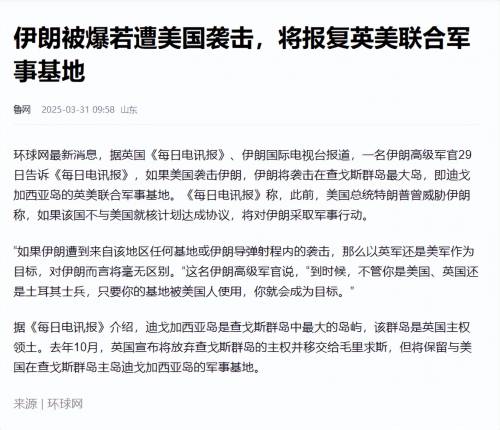之前美国高层“群聊”中让欧洲套钱的对话还历历在目,现在欧洲对美国的军事行动不可能冷眼旁观。针对伊朗的威胁,英国就表示,将继续与该地区的合作伙伴合作,以推动局势缓和,迪戈加西亚岛上的基地对英美安全至关重要。而英国这话看似是说给伊朗的,又何尝不是说给美国听的呢。