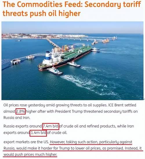 果然,就在特朗普威胁对俄罗斯和伊朗的出口石油征收“二级关税”后,伦敦布伦特原油价格3月31日立竿见影地上涨近2.8%。