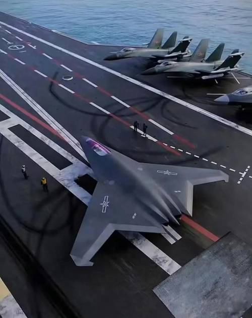 因为中国的歼-50很显然是可以登上航母甲板的,是可以进行弹射起降的,所以说歼-50很可能就会是中国海军新一代的舰载战斗机,其目标显然就是“大祸临头还不自知”的美国海军。比如歼-50的前起落架使用了“双轮设计”,这很显然就是为了适应未来的弹射起飞。因为舰载机的前起落架是需要被弹射器“牵引的”,而且在降落的时候需要承受最大的冲击力,所以歼-50前起落架使用粗壮的“双轮设计”显然就是为了上舰而准备的。再比如歼-50使用的“兰姆达翼”大幅降低了歼-50翼展的长度,这样一来就可以大幅降低对航母甲板空间的占用,中国海军的航母自然就能携带更多的歼-50。