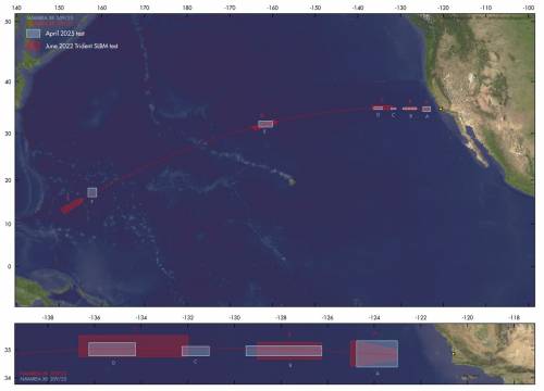 由于禁航区分布与美军在2022年进行“三叉戟”潜射弹道导弹试射时划出的禁航区相似,且美军当时就是连续多日进行试射,外界普遍认为美军要在这5天内进行新一轮“三叉戟”导弹试射。美军核潜艇将会从加利福尼亚外海的禁航区向西发射导弹,最终弹着点则在关岛附近。