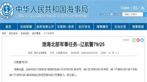 根据财联社消息,中国海事局已在渤海北部划定禁航区,并发布关于“军事任务”的航行警告,进一步增强了此次行动的神秘感。