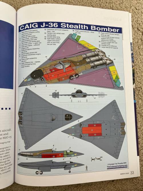 本来以为是对中国歼-36的毫不在意,可是最近在英国著名杂志《航空航天》三月刊上,却发现把中国歼-36的结构图放到了封面上。