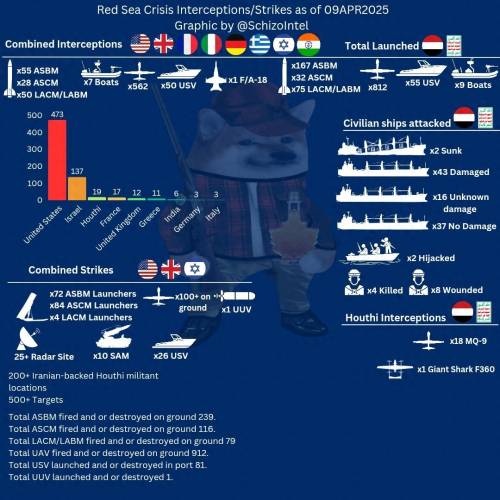 根据互联网开源情报分析师的统计,到4月9日,单单美国海军就已经拦截了473枚胡塞武装发射的反舰弹道导弹、反舰巡航导弹、自杀无人机和一些无人/有人水面舰艇等等。