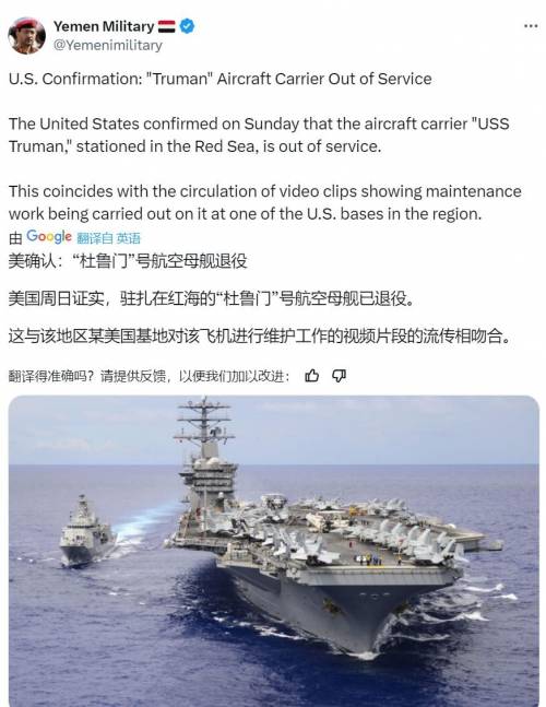 (个别自媒体声称“杜鲁门”号航母被胡塞武装打废被迫退役)