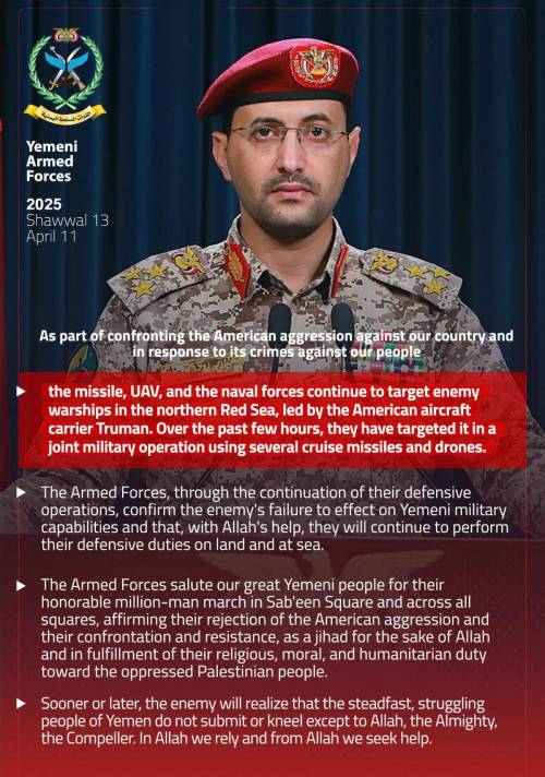 (胡塞武装发言人叶海亚在4月11日宣称袭击“杜鲁门”号航母)