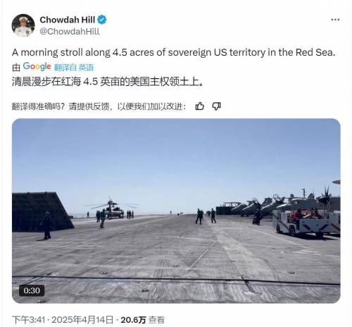 有意思的是,就在“也门军事”发布“杜鲁门”号航母被迫退役的消息评论区,“杜鲁门”号航母的舰长乔达-赫尔亲自出马“辟谣”,他发布了一段“杜鲁门”号航母甲板的视频,配文是“清晨漫步在红海的4.5英亩美国领土上”,“杜鲁门”号航母的甲板面积正好是4.5英亩,美军舰长显然是用这种方式,告诉网民们“杜鲁门”号航母完好无损,所谓被打废退役的消息纯属造谣。