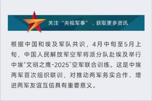 4月16日,中国国防部给出了明确答案:根据中国和埃及军队共识,4月中旬至5月上旬,中国人民解放军空军将派分队赴埃及举行中埃“文明之鹰-2025”空军联合训练。这是中埃两军首次组织联训,消息一经公布,立刻引发了全球关注。