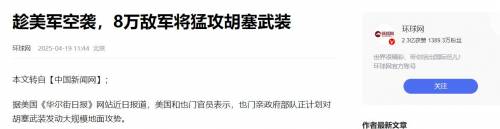 信息源:趁美军空袭,8万敌军将猛攻胡塞武装 环球网 2025-04-19