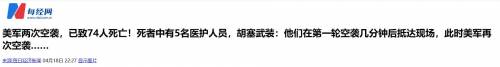信息源:美军两次空袭,已致74人死亡!死者中有5名医护人员