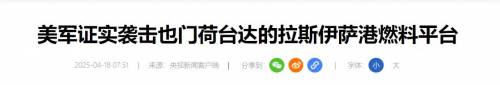 信息源:美军证实袭击也门荷台达的拉斯伊萨港燃料平台 央视新闻 2025-04-18