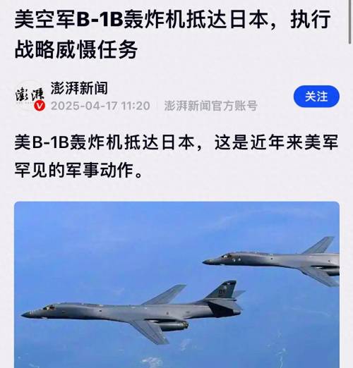 跟以往走个过场不同,这次B-1B直接停在日本,释放出的信号不言而喻,值得我们高度关注。