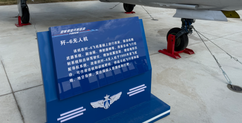 根据展板上的说法,歼-6无人机首先要承担的是靶机任务。这很好理解,歼-6无人机遥控起飞之后飞到预定空域,然后可以按照预先装定的航线展开机动动作。也可以根据飞控计算机里预先装定的多个程序,以地面发令的模式,随机选择某个程序展开机动,给地导雷达或者战斗机当靶机打就行了。