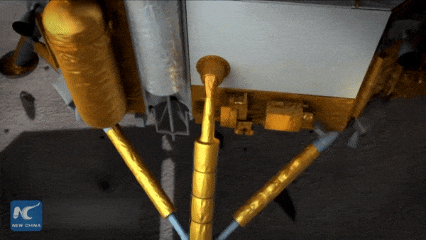 GIF“嫦娥五号”国旗展示系统在月面成功打开模拟图