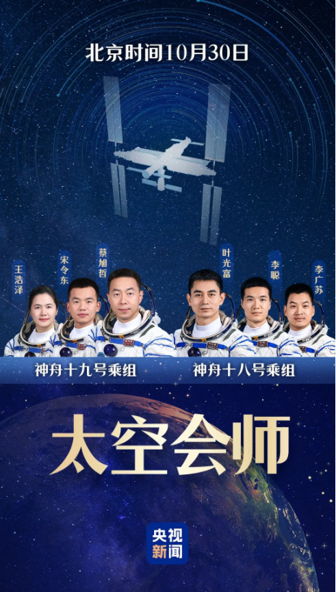 中国神舟19号成功发射,神舟19号航天员完成中国航天史上第5次“太空会师”,可以说令全球瞩目!央视新闻报道:神舟十九号3名航天员顺利进驻中国空间站,与神舟十八号3名航天员顺利会师。至此,“70后”“80后”“90后”航天员齐聚“天宫”!