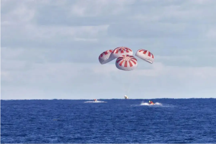 再来看看美国的降落方法,他们与我国不同,美国飞船比较喜欢在降落在水面上。
