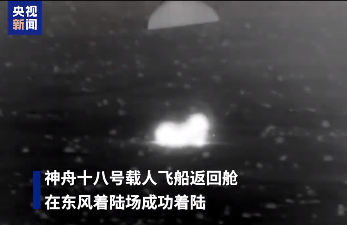 信息来源:新华社11月4日发文:《神舟十八号载人飞船返回舱在东风着陆场成功着陆》