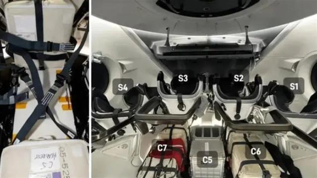 载人“龙”飞船字眼的出现,这搜船是可以搭载7名宇航员,但是处于安全上的考虑就安排了四个座椅。