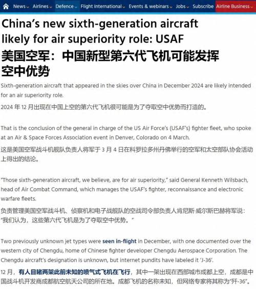 3月4日美国空战司令部负责人肯尼斯·威尔斯巴赫终于从“嘴硬”到“认怂”,表示“中国的六代机是为了夺取空中优势。”要知道,美国军方憋了半年硬说歼36是歼轰机,如今自己把遮羞布撕了个干净。而美空军的突然改口,只是因为他们在意识到自己需要第六代战斗机的时候,美海军的发展已经早他们一步了。