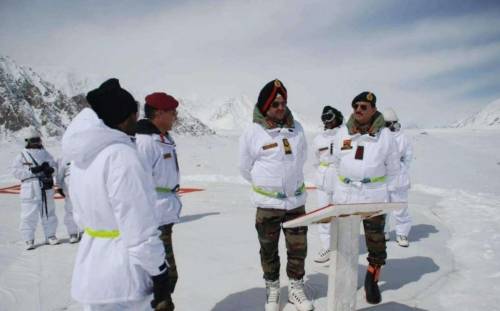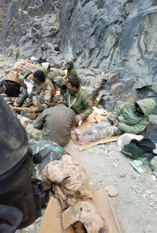 ▲印军高官们穿着进口防寒服,士兵们就难说了