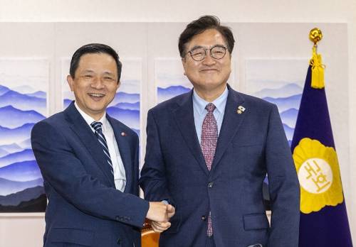 【禹元植周三在国会议长办公室与中国驻韩大使戴兵会面】