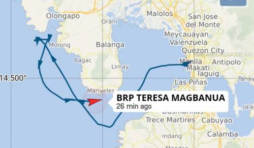 有AIS信息图显示,包括旗舰“特蕾莎·马格巴努阿”号在内的一批菲海岸警卫队船只,现在都缩在了马尼拉湾内。