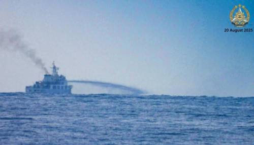【菲军发现有中国海警巡逻舰在仁爱礁附近海域进行水炮打击演练】