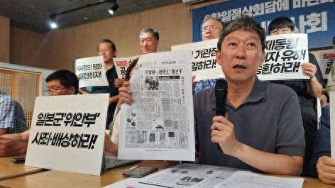 “韩日历史正义和平行动”21日举行发布会,对韩国总统李在明日前接受日媒采访时发表的言论提出抗议。图自韩媒
