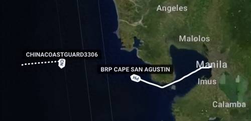 因为他们发现在马尼拉外海,贴着菲律宾领海线的位置,有一艘中国海警船在持续活动,已经航行超过1周时间了。