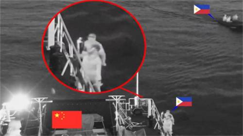 (菲律宾公布的画面截图,可以看到,是菲律宾小艇先蓄意靠近中国海警船的)