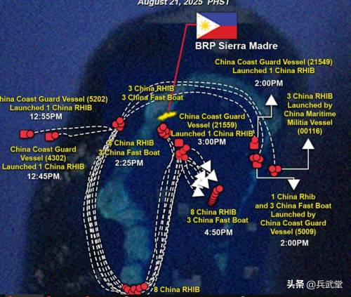 第一是钢甲渔船在仁爱礁东南a湖处布设渔网,防止菲方窜扰a湖内部。第二是在仁爱礁a湖内部部署大量船只,菲方武装部队对外称观测到11艘海警刚性重启快艇、5艘海警船,以及多艘钢甲渔船。这些船只进行了使用水炮等协同演练。而且菲方认为,一些海警快艇的船头架设了重机枪等热武器,这在以往是非常少见的,也是对菲方是一个很大的威慑。