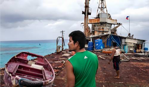 菲律宾海军陆战队在“马德雷山号”非法“坐滩”的第二天,便迅速登船驻守,并开始了定期轮换,将这艘破旧的军舰硬生生地变成了一个军事哨所。