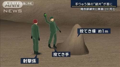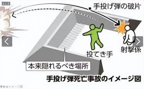 去年5月陆自还发生一起手榴弹爆炸事故,在手榴弹投掷训练时,一名队员投掷手榴弹后,爆炸碎片意外击中附近的教官,三等陆曹的脖子,送医后宣告死亡。经调查,死亡教官是因为爆炸时蹲的位置离防护墙太远了。