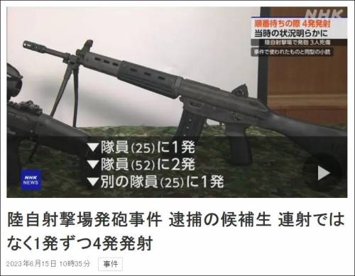 2023年6月,一名18岁年轻的陆自预备新兵在射击训练场突然拿起89式步枪向教官射击,一共开了4枪,当场打死两人,打伤一人。两名死亡一名25岁,一名52岁。
