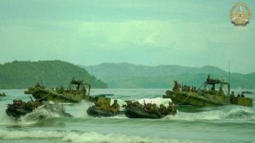 进入“夺回敌占岛屿”阶段后,由菲律宾陆军第7师第84步兵营与澳大利亚拉姆战斗群组成的联合登陆部队,在小型内河艇、巡逻艇以及橡皮突击艇的运送下,对模拟岛屿目标进行了两栖登陆演练。而在同一时刻,由美军陆战队和菲律宾突击队组成的垂直登陆群也搭乘MV-22鱼鹰倾转旋翼机对岛上的模拟机场进行了突袭。菲律宾空军则是出动FA-50攻击机,与澳大利空军战机组成空袭机群,为登陆部队提供了近距火力支援。