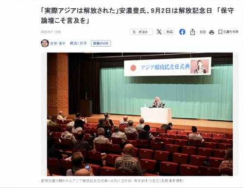 日本眼看劝不住,就换了个套路:8月31日,在千代田区永田町的一处会馆,办了一场名头很长的座谈:要阐明日本在上一次战争中倡导的亚洲解放。
