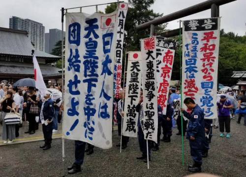 站在台上的,是昭和史修复派的熟脸,庵野丰等人轮番上阵。这个学派的口号你大概听过——日本人啊,请把精神从自虐史观里独立出来。意思很直白:否认日本的侵略罪行,把其美化为正义。