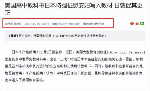 比如,当初美国的教科书将慰安妇写入了教材,日本却跳出来让对方修改这个内容。