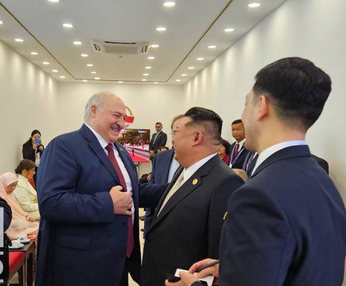【首先是阅兵式开始前,金将军与多位外国元首和领导人互动】