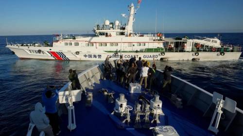 据报道,菲方船只在接近仁爱礁过程中,多次被中国海警依法拦截管控,活动范围一度被压缩到仁爱礁24海里开外。中国海警舰艇不仅在仁爱礁湖内外分别布防,还在信义礁、半路礁等关键位置拦截菲律宾船只,菲船一度寸步难行。