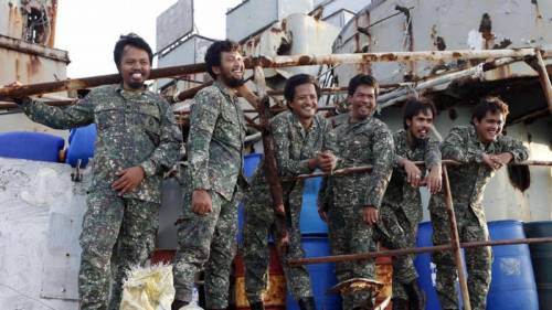 (坐滩军舰上的菲军)