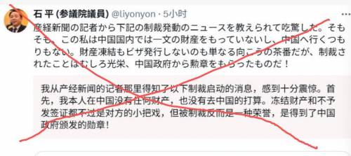 2025年7月,石平太郎借着日本维新会的政治渠道,以比例代表身份当选日本参议员。这是他从媒体评论员到正式政客的转变,他似乎觉得这是事业的“巅峰时刻”。