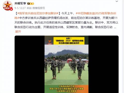 在这样的大背景下,中国和尼泊尔军事合作也逐渐频繁起来。9月5日,中国参训官兵从西藏拉萨贡嘎机场出发,前往尼泊尔某训练基地。这次参训的官兵以西藏军区某部力量为主,将与尼泊尔参训军队开展为期11天的中尼“珠峰友谊-2025”陆军联合训练。
