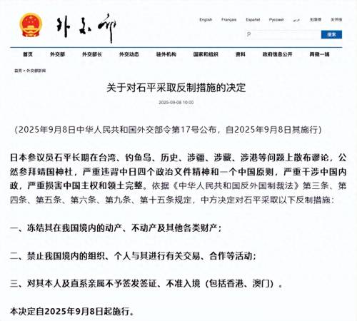 9月8日,中国宣布制裁石平太郎,立刻引发国际关注。说到底,这个动作根本不是孤立的“点杀”。石平太郎,这个名字背后的故事,远比表面复杂。
